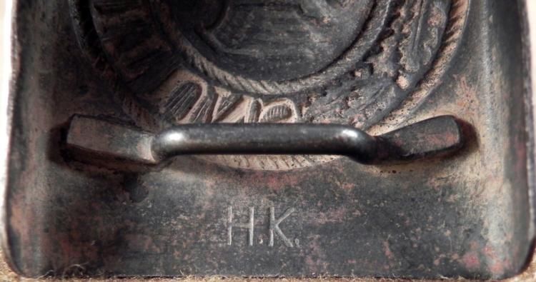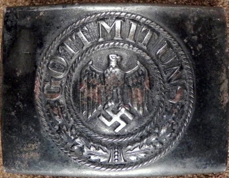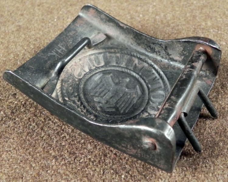 THIS IS A GREAT HARD TO COME BY, EARLY ORIGINAL COMBAT DARK BLUE/BLACK WEHRMACHT WAR BELT BUCKLE. IT HAS GREAT EARLY CRISP DETAIL WITH THE MAKER'S MARK "HK" ON UNDERSIDE-VET ESTATE BUY. *