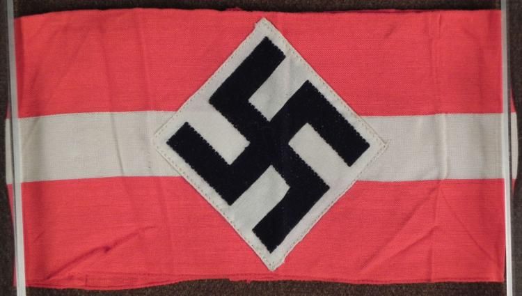EARLY ORIGINAL HJ/HITLER YOUTH NAZI ARMBAND-HIGH QUALITY-SEWN TOGETHER & WAS WORN * NICE ORIGINAL BRING-BACK MULTI-PIECE CONSTRUCTION OF TRUE EARLY QUALITY *