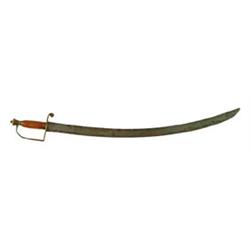 EARLY PILLOW POMMEL SWORD. 27-3/4" single fuller blade marked "G G" on the right ricasso. The grip is a roughly carved piece of wood. There is no finish on the hilt. CONDITION: Gray patina overall with slight signs of etching on the blade mixed with pitting and sharpening of the edge. Wood is cracked. Patina on the guard and pommel is dark. Ciak Collection 4-53239 FS512