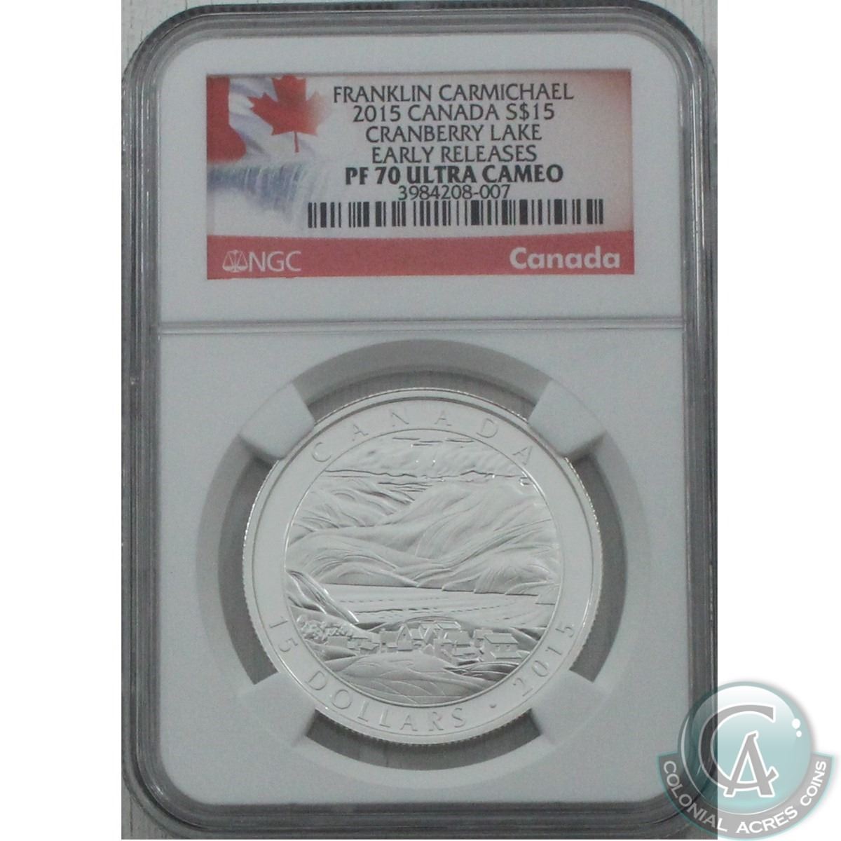 EARLY RELEASES!! 2015 Canada $15 Franklin Carmichael Series - Cranberry lake Fine Silver NGC Cert. PF70; Ultra Cameo
