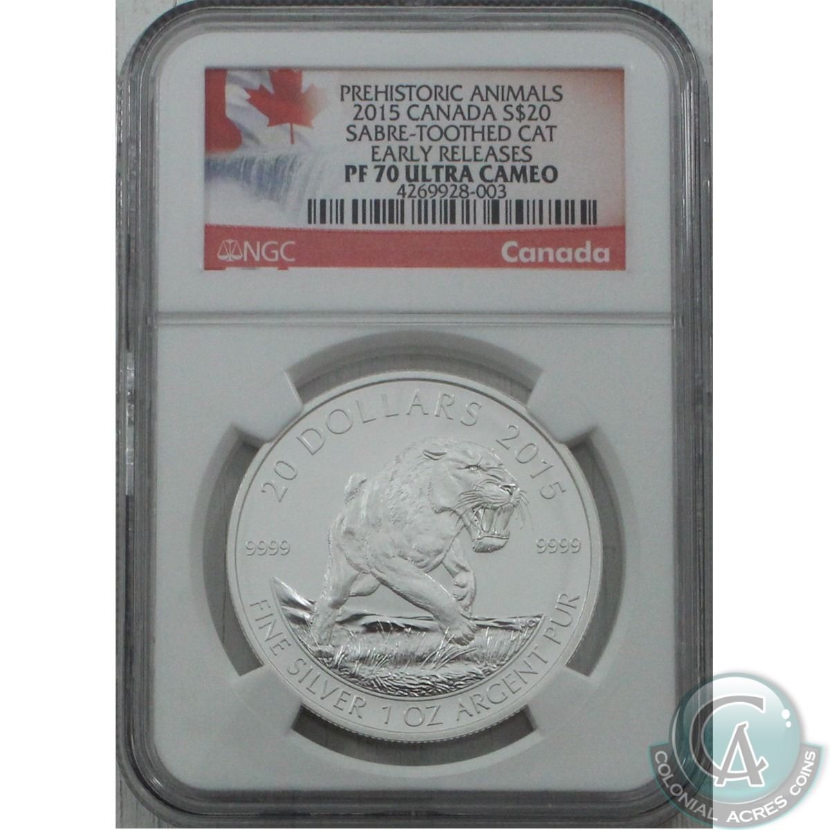 EARLY RELEASES 2015 Canada $20 Prehistoric Animals Series: Sabre-Toothed Cat NGC Certified PF70 Ultra Cameo (TAX EXEMPT)