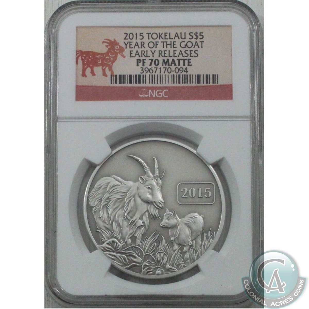EARLY RELEASES 2015 Tokelau $5 1 oz. Year of the Goat .999 Fine Silver NGC Certified PF70 Matte (Tax Exempt)