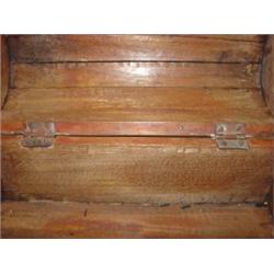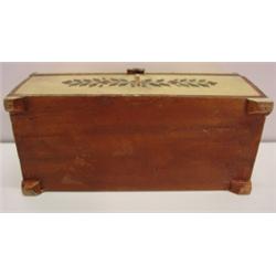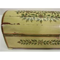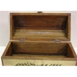 EARLY ROLL TOP DRESSER BOX with original paint decoration. Original hinges & feet. Slight wear and damage to reverse side of top. 5" H, 9.5" W, 4.25" D