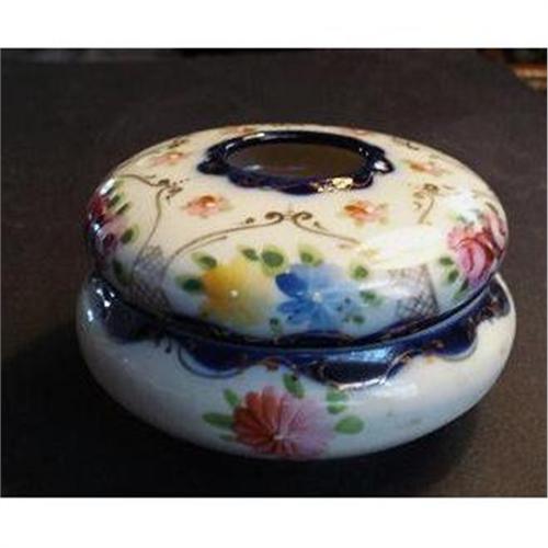 GORGEOUS HAND PAINTED FLORAL HAIR RECEIVER, IT IS NOT STAMPED BUT JUDGING BY DECORATION STYLE AND QUALITY I AM PRETTY SURE THAT IT IS ROYAL NIPPON AND THESE PIECES ARE VERY SELDOM STAMPED, Excellent condition,Measures about 4" in diam., and about 3" high, US Buyer to pay 7.00 for shipping plus insurance.THANKS.
