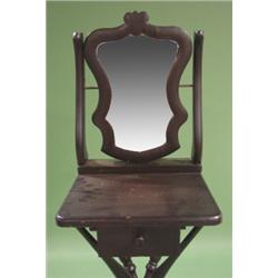 EARLY OAK STAINED SHAVING STAND. Four legs. Single drawer. Wood around mirror is separated in two places. 67" H, 14" W, 14" D