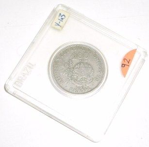 EARLY SILVER BRAZIL 200 REIS *RARE VERY FINE/EXTRA FINE GRADE!! COIN CAME OUT OF SAFE!! ***Coin, Currency & All Items Listed in this auction - Grades, Conditions and Values are not Safe Deposit Coins LLC Responsibilty. Grades, Condition and Values are determined by Consigner(s) & Buyers ONLY