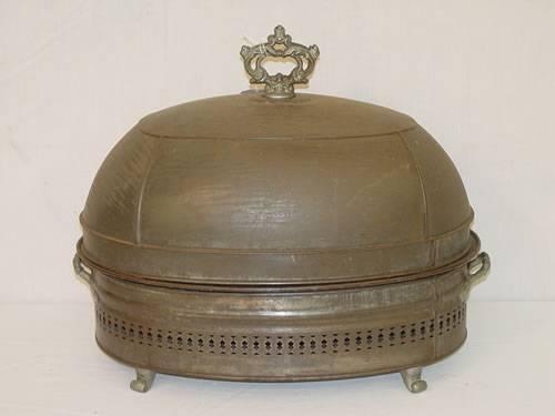 EARLY TIN DOMED MEAT SERVER - WEAR & LOSSES;