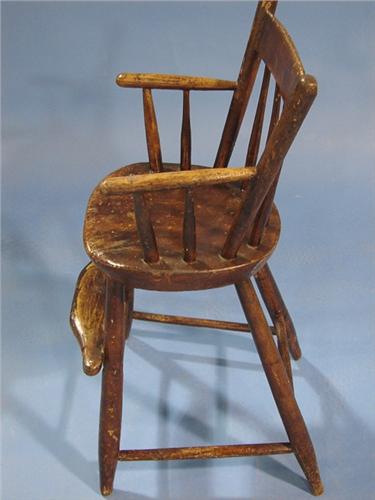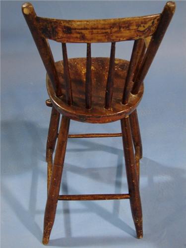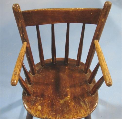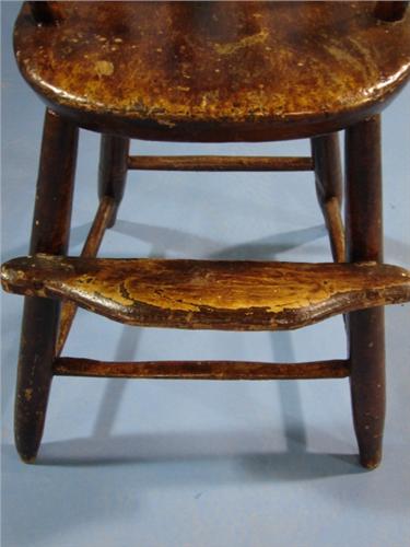EARLY WINDSOR YOUTH CHAIR. Brown varnish over red wash. Shows signs of wear. 31.5” H, 14” W