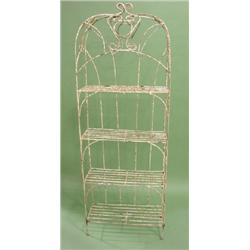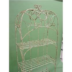 EARLY WROUGHT IRON PLANT STAND. Shows signs of wear & rusting. 68” H, 24.25” W, 10.5” D