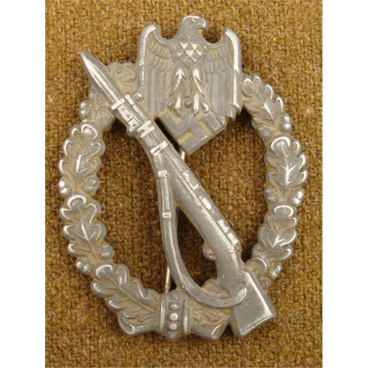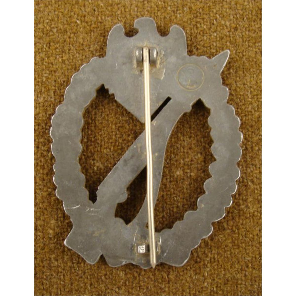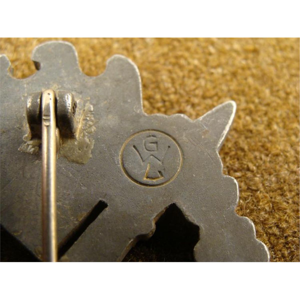 EARLY WWII NAZI INFANTRY ASSAULT AWARD BADGE-MAKER "GWL" IN CIRCLE * NICE EARLY ORIGINAL-PINBACK-LACKING RETAINING CLASP *