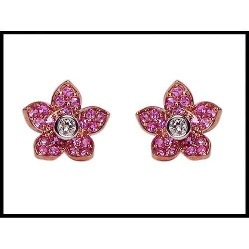 Versatile earring jackets can be worn as seen, or as diamond post earrings, or with a pearl stud in place of the diamonds. Collection quality natural pink sapphires sparkle like red diamonds. The brilliant diamonds total .16 carats. 14K gold has been worked and set by a master. This is superb workmanship. 11mm in diameter.