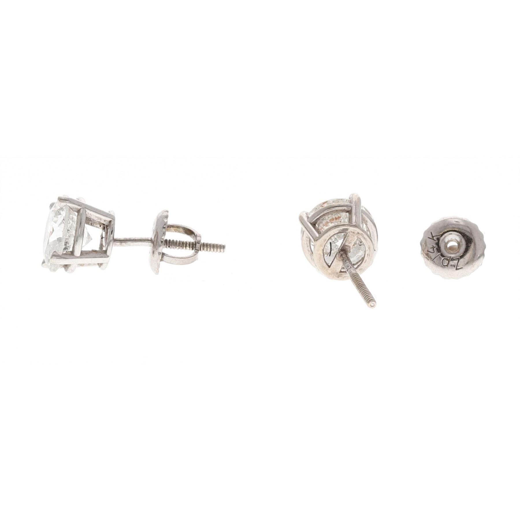 EARRINGS: [1] 14KWG pair earring studs, post screw backs, each set w/ 1 rbc dia,1.00 cts., 2.00 cts. TWA. I1/J. 1.4 grams.