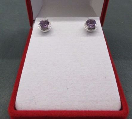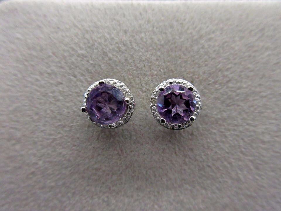 EARRINGS- 1.5 CTW AMETHYST & DIAMONDS IN STERLING SILVER SETTING - RETAIL ESTIMATE $300