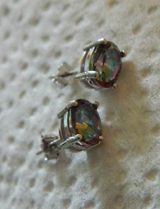 EARRINGS - 2.2 TCW OVAL FACETTED LIVELY PINK & GREEN MYSTIC TOPAZ IN STAMPED 925 STERLING SILVER SETTING - PLATINUM OVERLAY - POST & BUTTERFLY BACKING - INCLUDES CERTIFICATE - $200 (W-90)