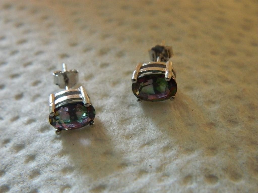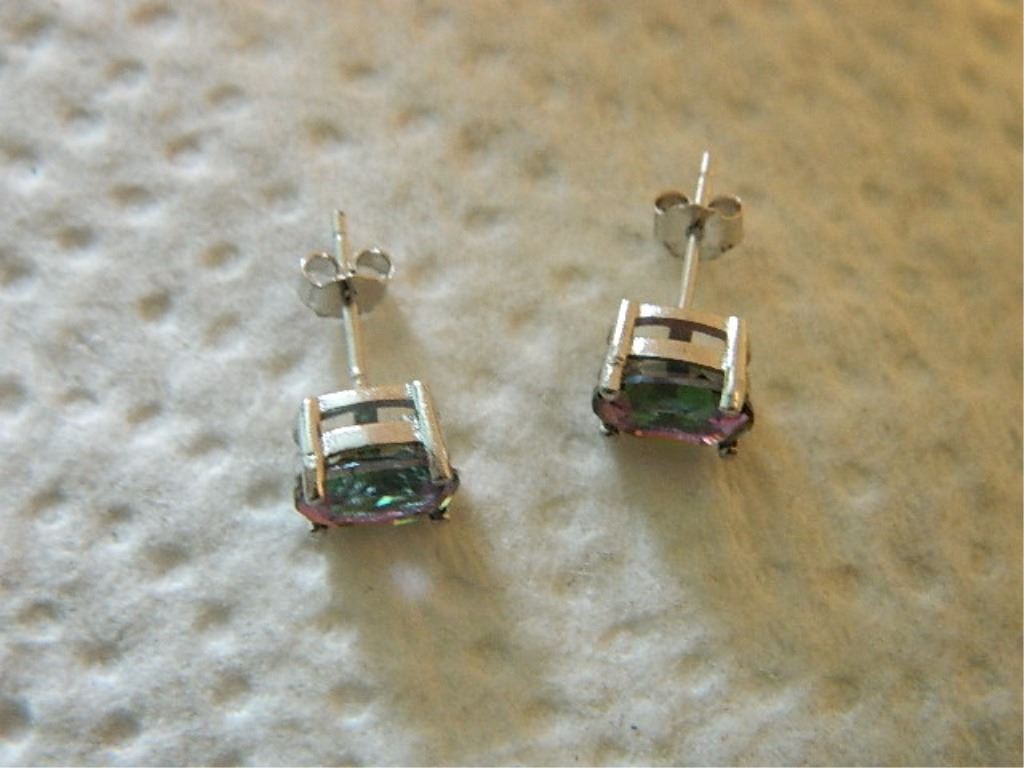 EARRINGS - 2.2 TCW OVAL FACETTED LIVELY PINK & GREEN MYSTIC TOPAZ IN STAMPED 925 STERLING SILVER SETTING - PLATINUM OVERLAY - POST & BUTTERFLY BACKING - INCLUDES CERTIFICATE - $200 (W-90)