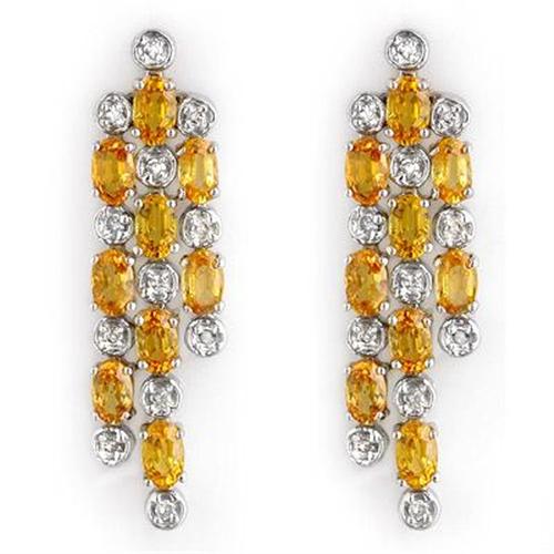 EARRINGS 6.33ct CERTIFIED DIAMOND & YELLOW SAPPHIRE 14K