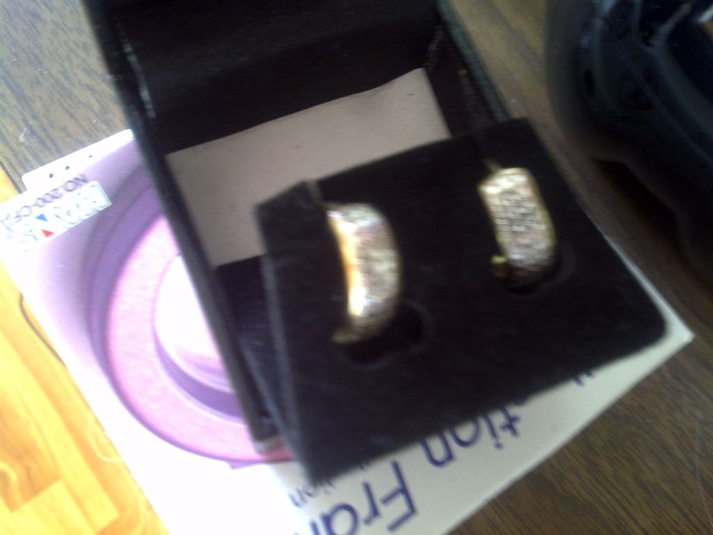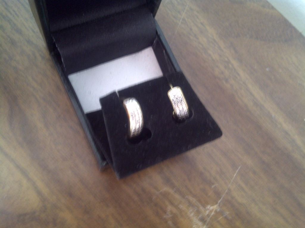 EARRINGS - DIAMONDS IN STERLING SILVER SETTING WITH 14K GOLD OVERLAY - HOOP DESIGNED - RETAIL ESTIMAE $350