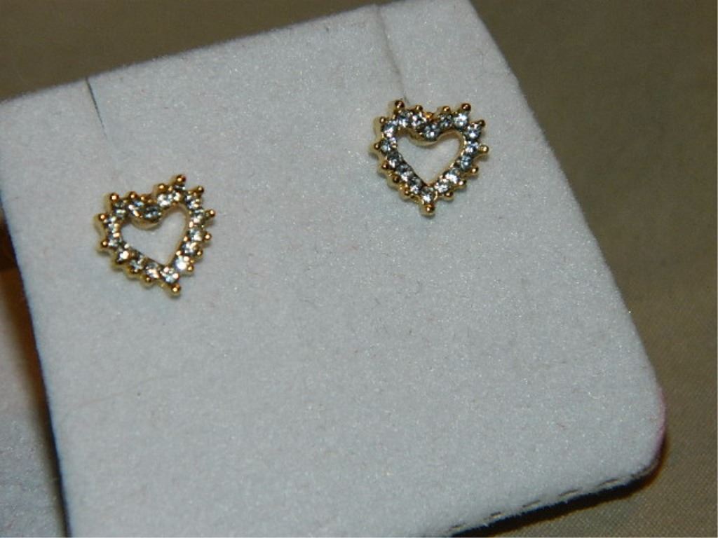 EARRINGS - GOLD TONE - CLEAR CRYSTALS IN HEART DESIGNED SETTING - NON-FEROUS