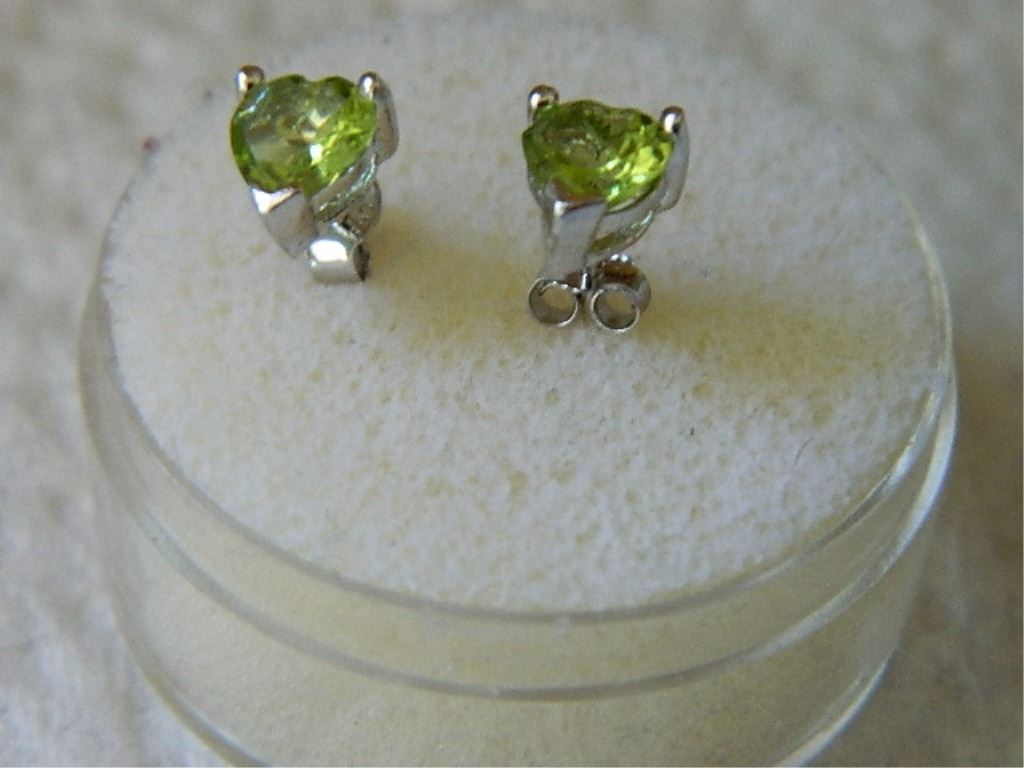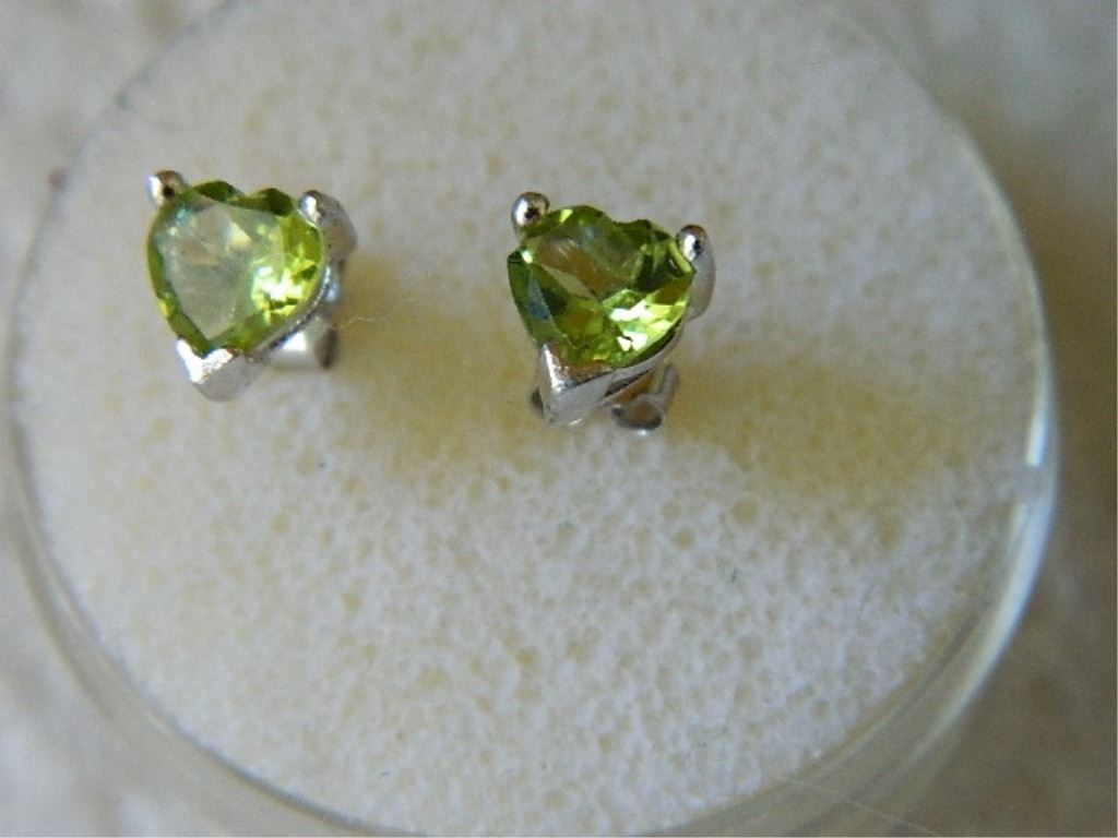 EARRINGS- HEART CUT PERIDOT IN STERLING SILVER STUD DESIGN SETTING - POST & BUTTERFLY BACKING - RETAIL ESTIMATE $175