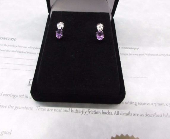 EARRINGS - NEW 1.7CT ROUND FACETED AMETHYST & DIAMONDS IN STERLING SILVER SETTINGS - POST & BUTTERFLY BACKS - INCLUDES CERTIFICATE $350