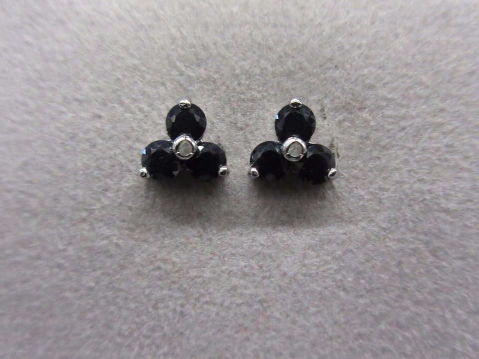 EARRINGS - NEW 2.04CT SAPPHIRE & DIAMOND IN STERLING SILVER FLOWER DESIGNED SETTING - INCLUDES CERTIFICATE $325