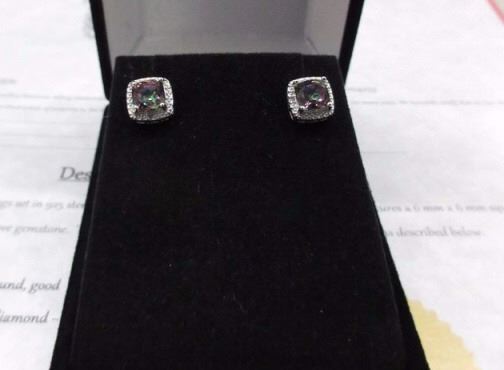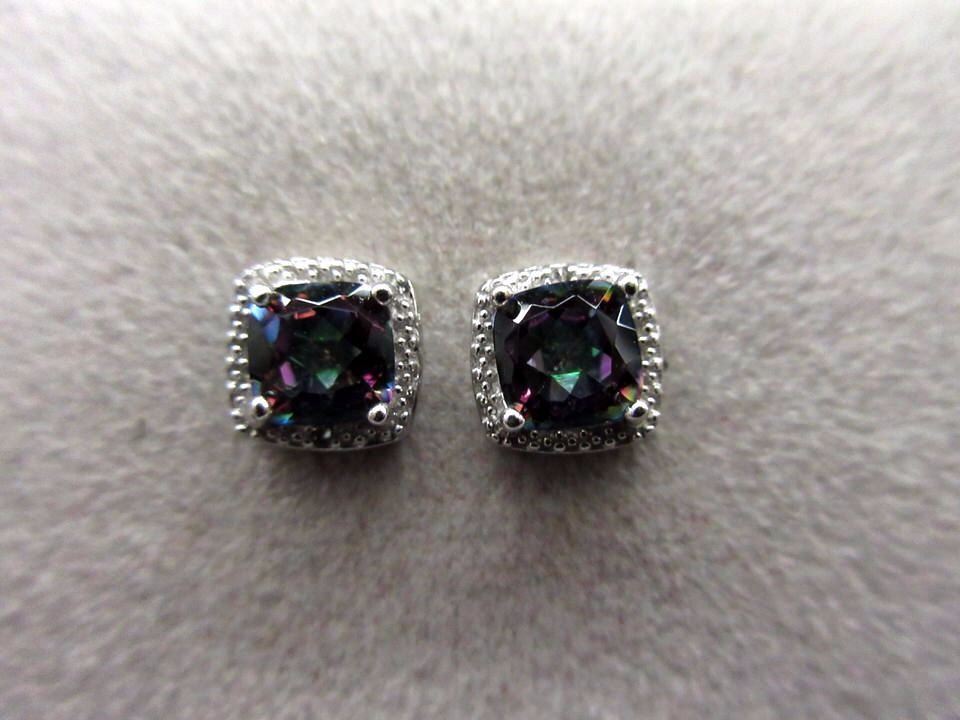 EARRINGS- NEW 2 CTW PRINCESS FACETED MYSTIC TOPAZ & DIAMOND IN STERLING SILVER SETTINGS - INCLUDES CERTIFICATE $300