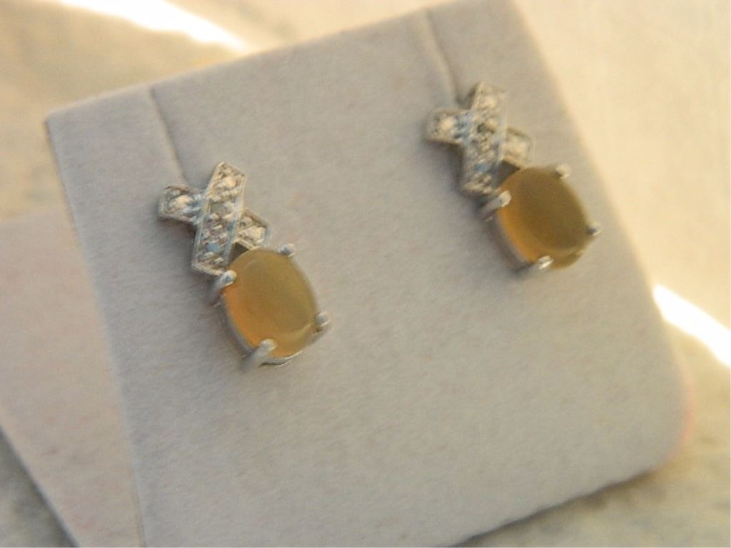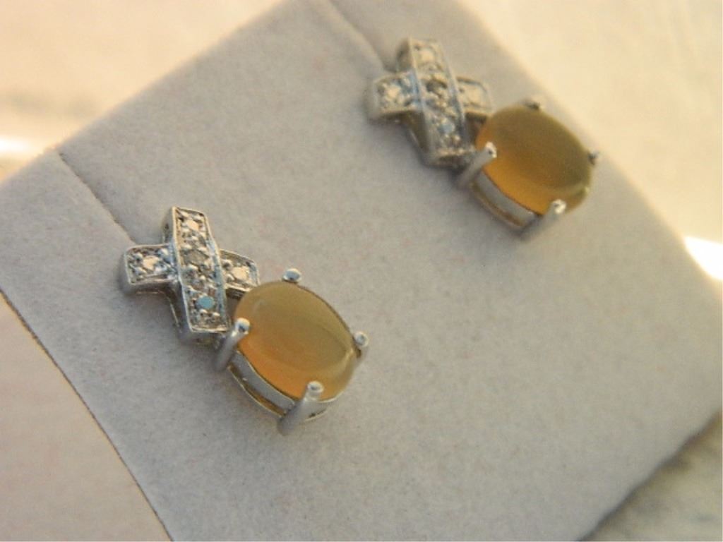 EARRINGS - NEW BROWN CHALCADONY & DIAMONDS EARRINGS - NEW BROWN CHALCADONY & DIAMOND IN STERLING SILVER HUGGS ANS KISSES DESIGN - STUDS - RETAIL ESTIMATE $275