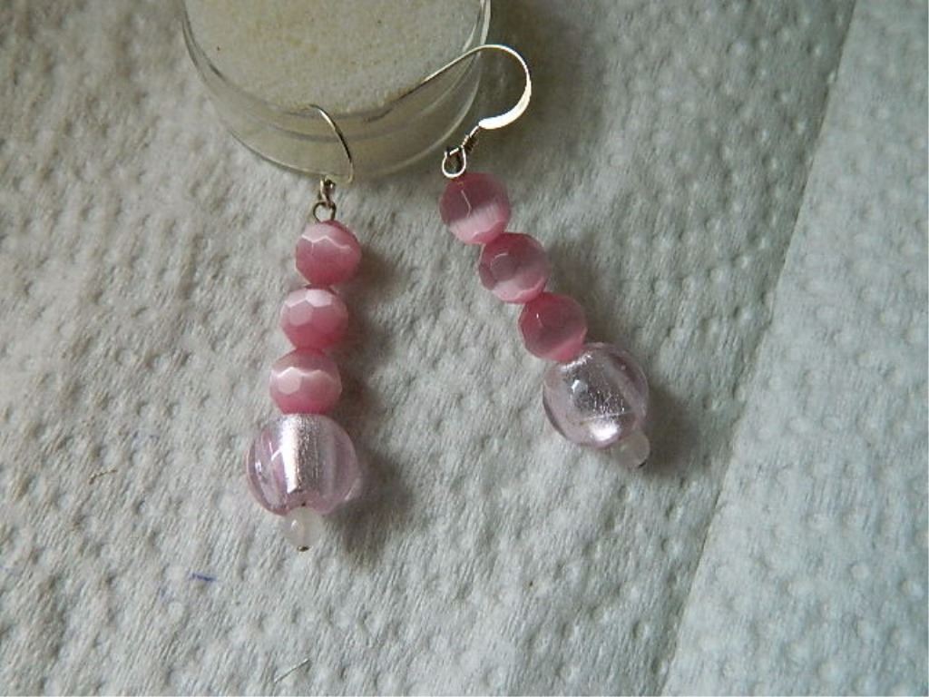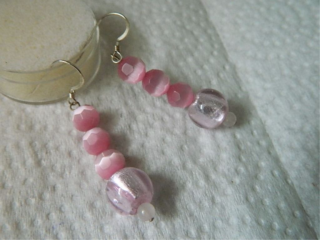 EARRINGS - NEW - FACETED PINK CATS EYE WITH SHEPHARD HOOKS - 1 1/2"