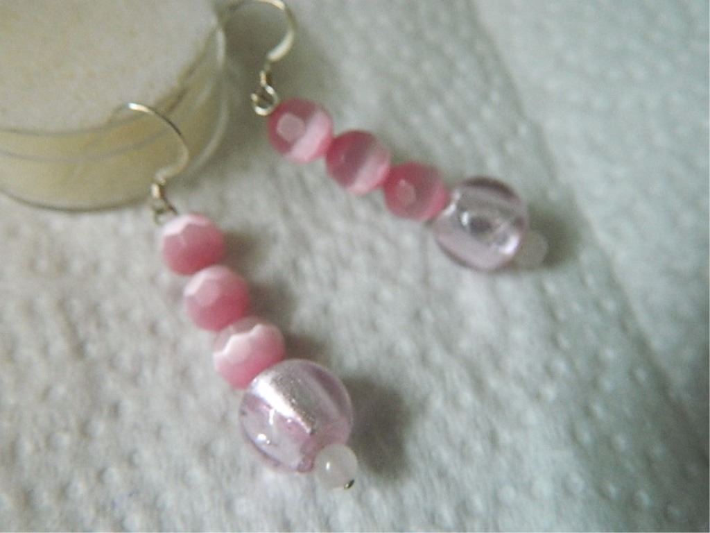 EARRINGS - NEW - FACETED PINK CATS EYE WITH SHEPHARD HOOKS - 1 1/2"