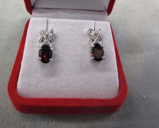 EARRINGS - NEW GARNET & DIAMONDS IN STERLING SILVER SETTING - POST & BUTTERFLY BACKING - RETAIL ESTIMATE - $275