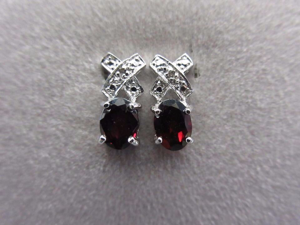 EARRINGS - NEW GARNET & DIAMONDS IN STERLING SILVER SETTING - POST & BUTTERFLY BACKING - RETAIL ESTIMATE - $275