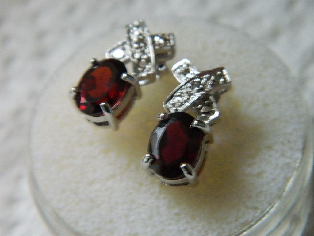 EARRINGS - NEW GARNET & DIAMONDS IN STERLING SILVER SETTING - POST & BUTTERFLY BACKING - RETAIL ESTIMATE - $275