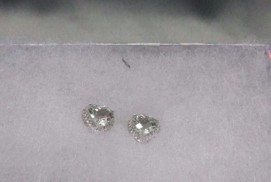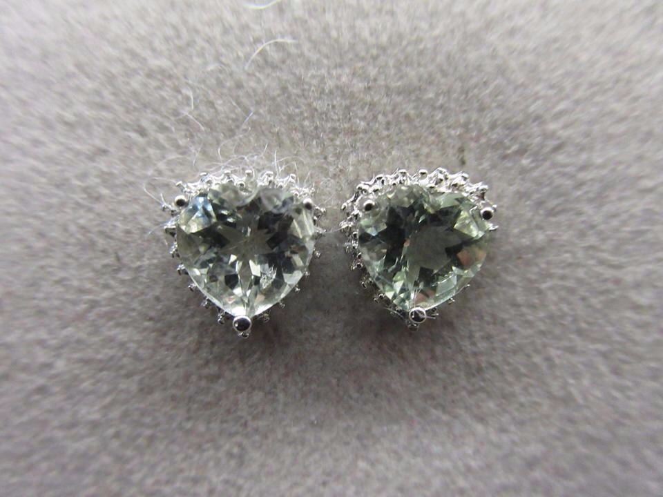EARRINGS - NEW HEART CUSION CUT GREEN AMETHYST & DIAMONDS IN STERLING SILVER STUD DESIGNED SETTING - POST & BUTTERFLY BACKS - RETAIL ESTIMATE $375
