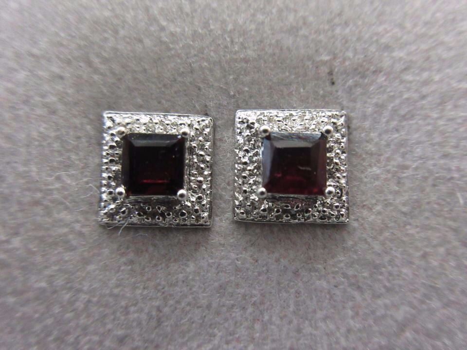 EARRINGS- NEW PRICESS FACETED GARNET & DIAMONDS IN STERLING SILVER SETTING - RETAIL ESTIMATE $250