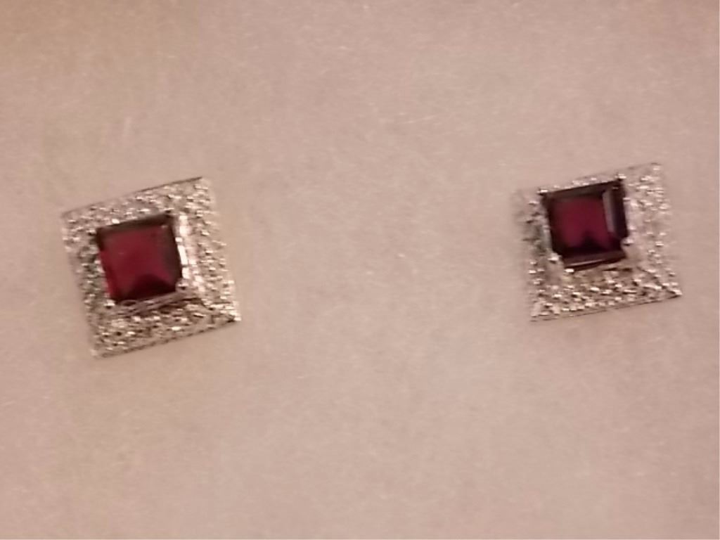 EARRINGS- NEW PRICESS FACETED GARNET & DIAMONDS IN STERLING SILVER SETTING - RETAIL ESTIMATE $250