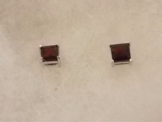 EARRINGS - PRINCESS FACETED GARNET IN STERLING SILVER STUD DESIGNED SETTING - POST & BUTTERFLY BACKS - RETAIL ESTIMATE $350