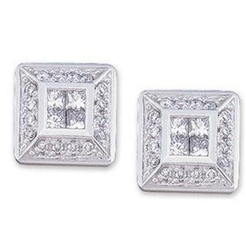This beautiful pair of White Gold Earrings features both PRINCESS and ROUND DIAMONDS. Each Earring features 4 PRINCESS CUT DIAMONDS surrounded by 16 round DIAMONDS. The Diamonds in this pair of Earrings are all well matched, FINE 'H' Color and 'I1' Quality. The DIAMOND TOTAL WEIGHT = .50 CARATS!