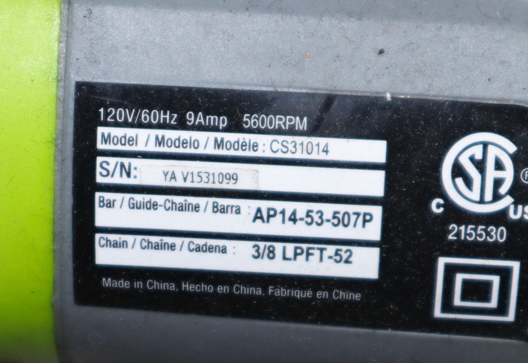 OF CHAINSAW OIL. CHAINSAW DOES LEAK SOME. MODEL CS31014