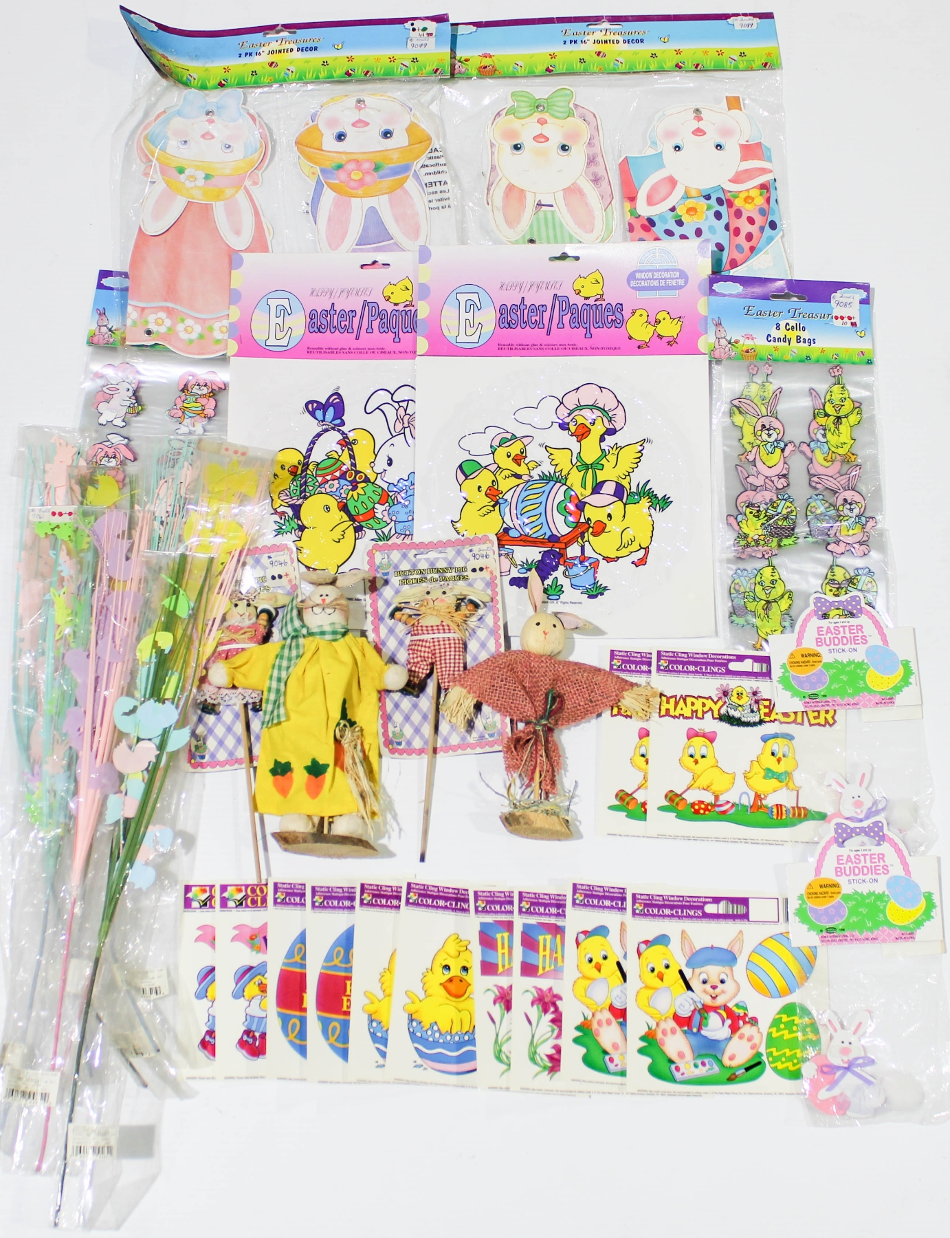 EASTER DECORATIONS - 8 CELLO CANDY BAGS - WINDOW CLINGS ETC.