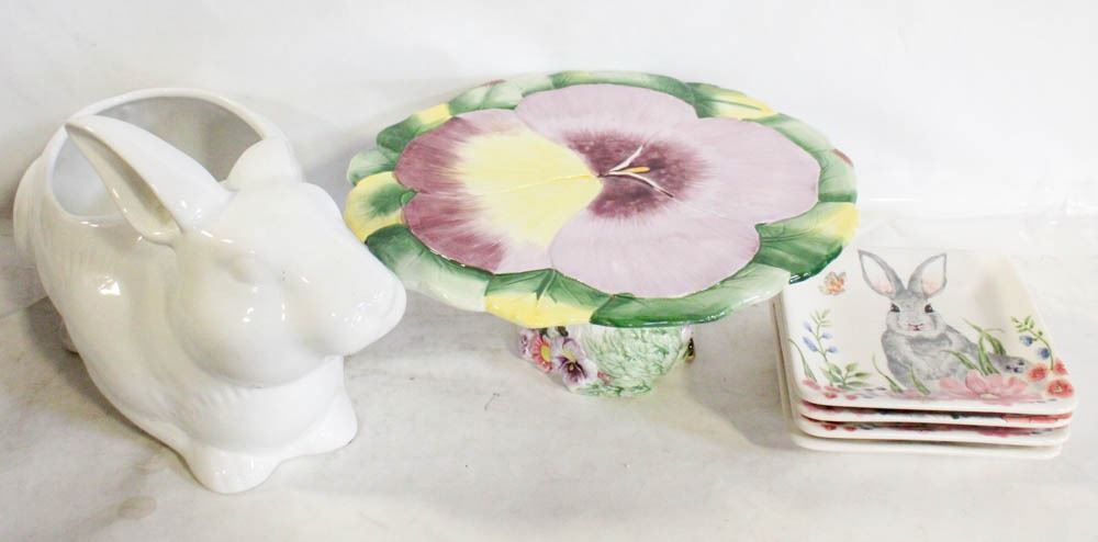 EASTER RABBIT CERAMIC SERVING WARE- LOT OF 6