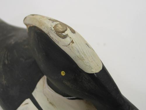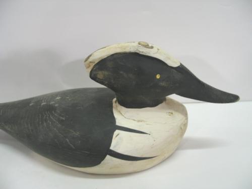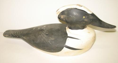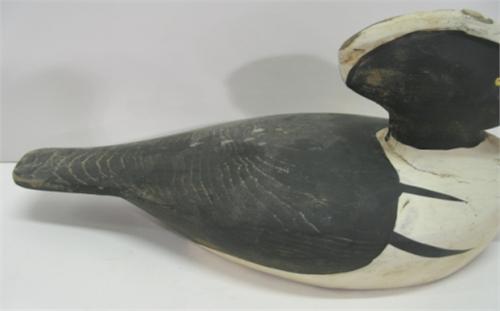 EASTERN SHORE HOODED MERGANSER DECOY. Shows minor loss to paint at head and tail. 13.75” L