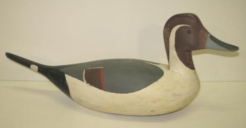 EASTERN SHORE PINTAIL DRAKE DECOY. Slightly turned head. Glass eyes. Carved ‘E’ at bottom. 18.75” L