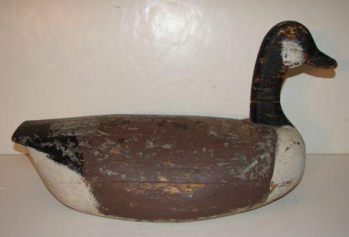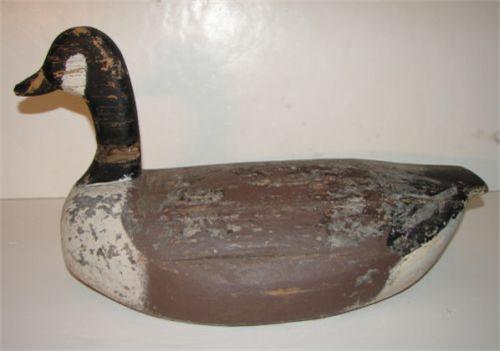 EASTERN SHORE, VIRGINIA CANADA GOOSE DECOY. Tack eyes. Early repaint. Wood shows some splitting. Lead weight at bottom. 20" L