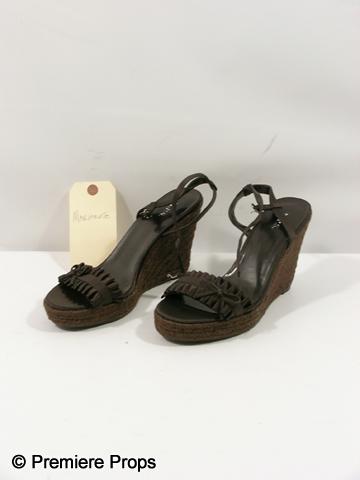Easy A (2010) - Marianne (Amanda Bynes) black with tweed wedge heels bow on the front with straps 'M.P.S.' shoes. (size 8) Includes wardrobe tag!