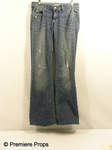 Easy A (2010) -Olive (Emma Stone) screen worn, hero, brown cotton with lace trim 'Abercrombie & Fitch' tank top, (size S) distressed faded blue with holes on the knee 'Paige Denim' jeans, (size 27) silver colored hoop earrings, and silver colored necklace with different small pendants. Includes wardrobe tag!