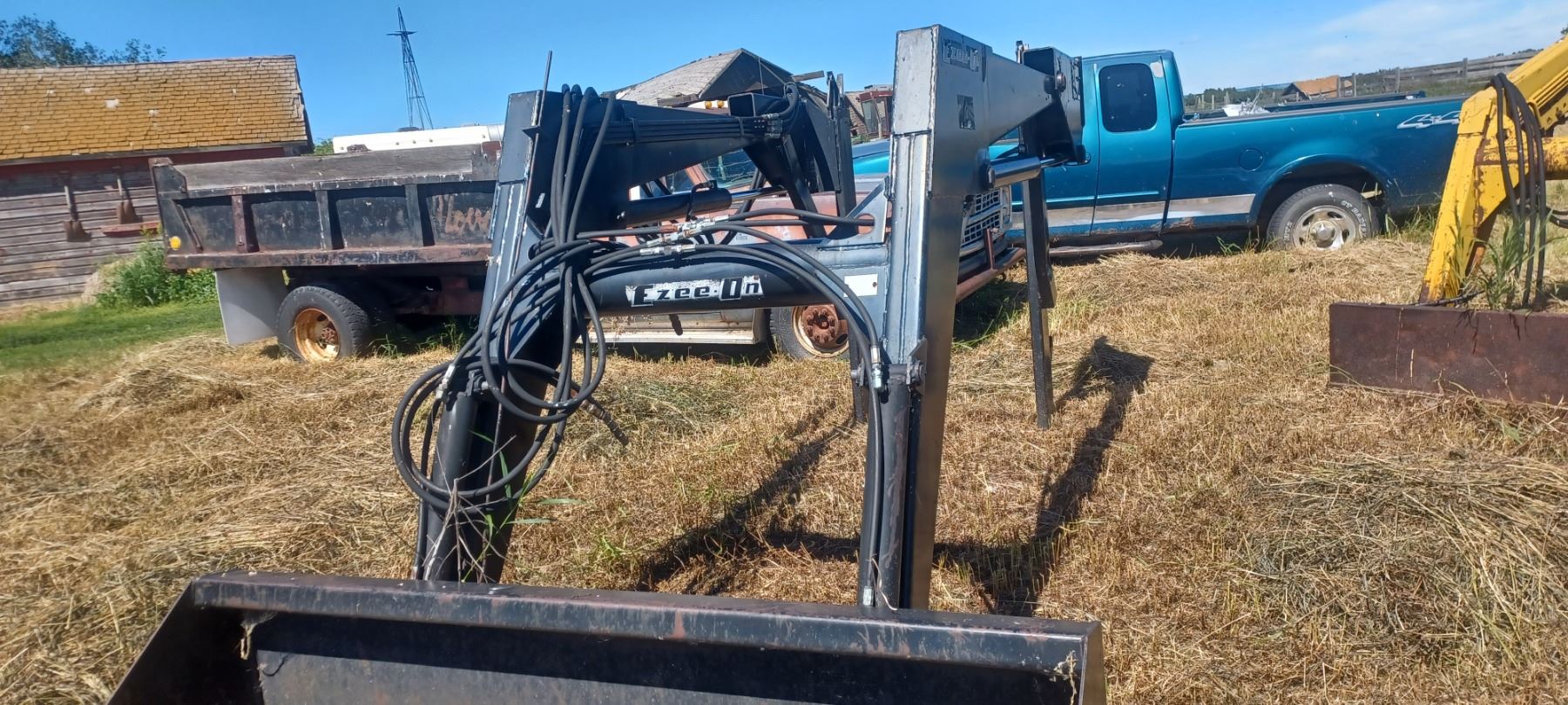 EASY ON FRONT END LOADER ATTACHMENT MODEL 2100 SN 45828C/W 7 FT BUCKET AND MOUNTING BRACKETS, MOUNTING FRAMES ATTACHEED TO LOT120 AND MUST BE REMOVED BY BUYER FROM LOT #120 ASAP