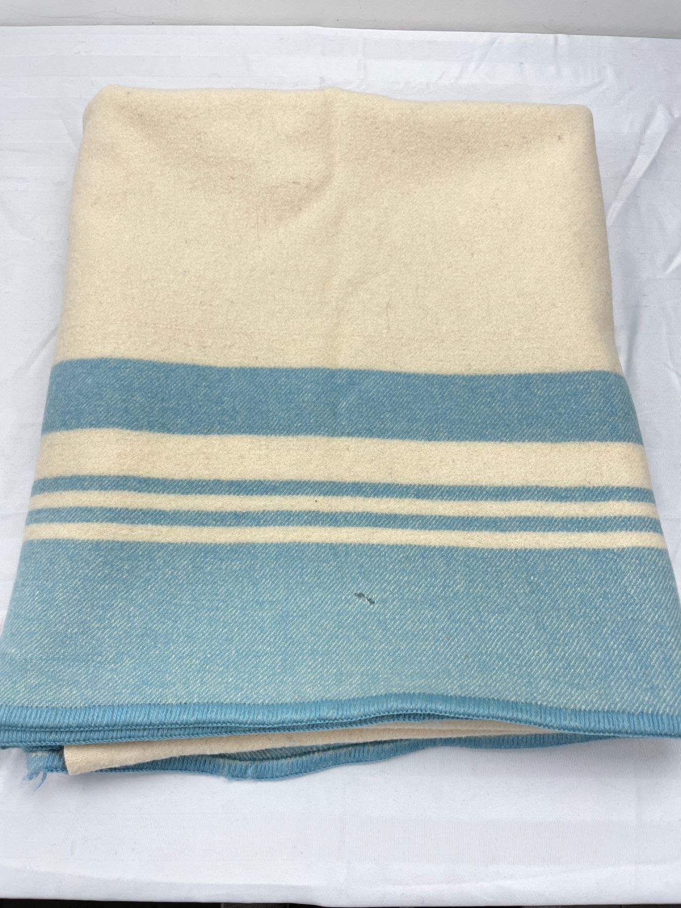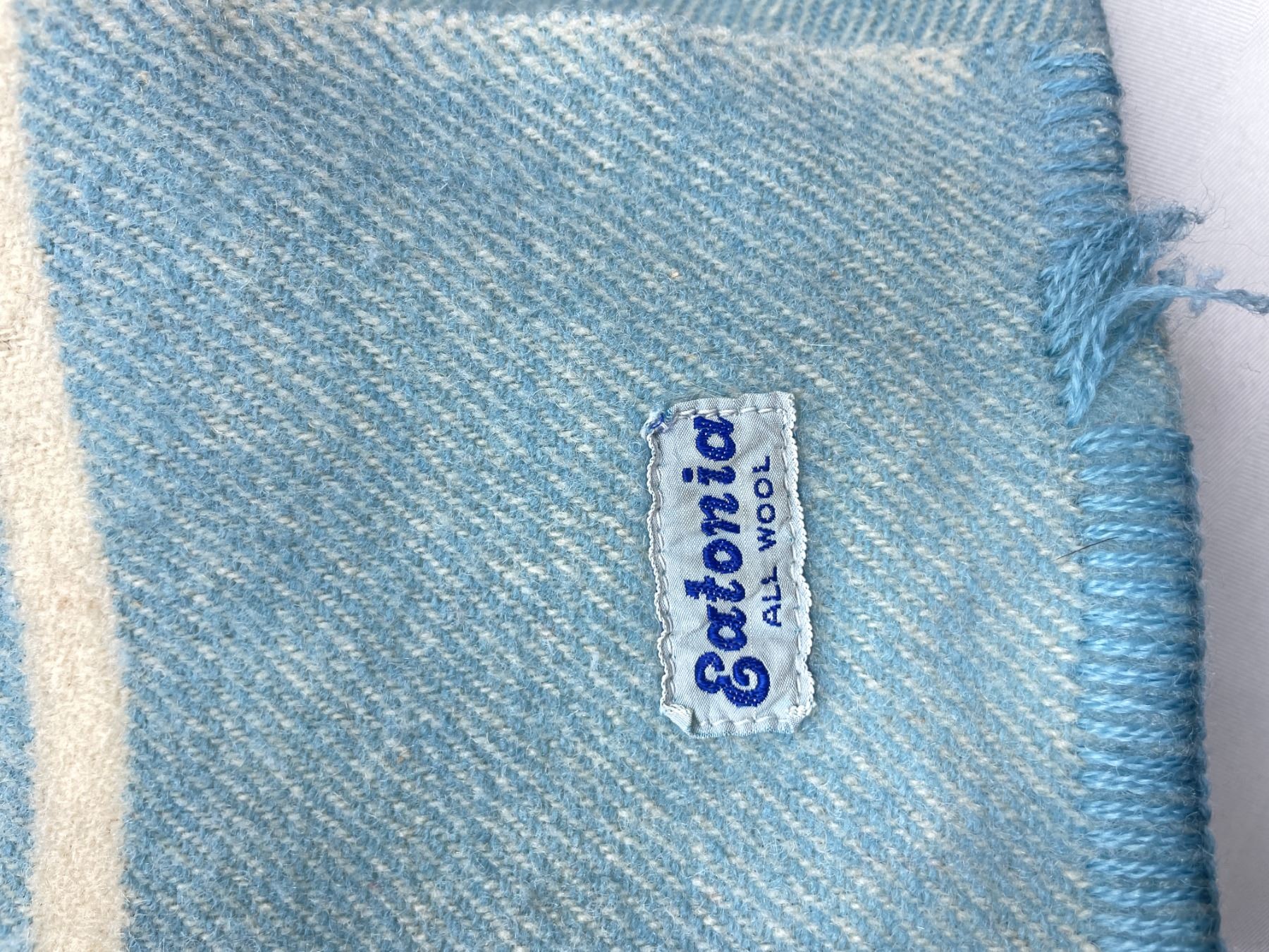 EATONIA All wool blankett in good condition. Has small hole that could be fixed. Dimensions 80" length x 52" wide.