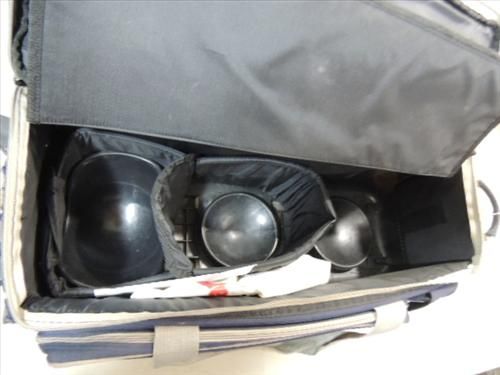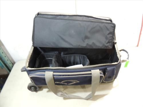EBONITE 3 BOWLING BALL TRAVEL ROLLER BAG. AS SHOWN. VIEW PICTURE FOR DETAIL.