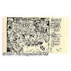 <B>EC Comics - New Direction Subscription Ads Group of 3 (1950s).</B></I> Two different EC subscription ads, including "An intimate and informal view of the Entertaining Comic (sic) Group hard at work" (two copies, both NM), and "Thanks for your note -- the E.C. Gang" (Excellent condition with some creasing on the right side). All were folded into fourths for mailing. An original EC envelope is also included. A great nostalgic set sure to enhance any EC collection. <I>From the collection of Bobby Harmon.</B></I> <BR><BR><B>Important notice:</B> Heritage usually auctions material at the rate of 200-250 lots per hour. On some occasions eBay Live bid software or the Internet may not be able to keep up with the pace of the auction. We recommend placing a realistic absentee bid now as insurance to avoid disappointment. Occasionally the auctioneer may eliminate or reject an eBay Live bid, and the auctioneer may also reopen a lot after the close of the eBay live bidding (usually because we missed an audience bid), and may reject your bid even if it shows you as the winning bidder. By bidding via eBay Live, you agree that Heritage may award the lot to another bidder at its sole discretion under the circumstances described above or any other reasonable circumstances. Since eBay bids are not shown to us until we open the lot on the floor, we treat those bids just like floor bids. In most cases the floor responds before the eBay bid is presented to us, due to Internet lag time, so for consistency we have made it a policy that floor bids are always considered first over tie eBay live bids. Also please note that all Heritage lots purchased through eBay Live carry a 20% Buyer's Premium. Please make sure you read the Terms and Conditions before you bid.
