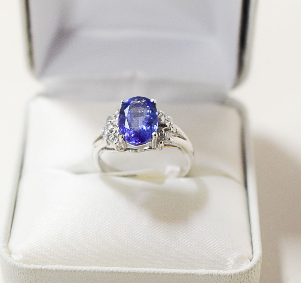 10K WHITE GOLD TANZANITE(2.6CT) DIAMOND(0.1CT) RING (~SIZE 6)(RING IS RESIZABLE FOR $40) (~WEIGHT 3.61G), MADE IN CANADA, APPRAISED RETAIL $4380